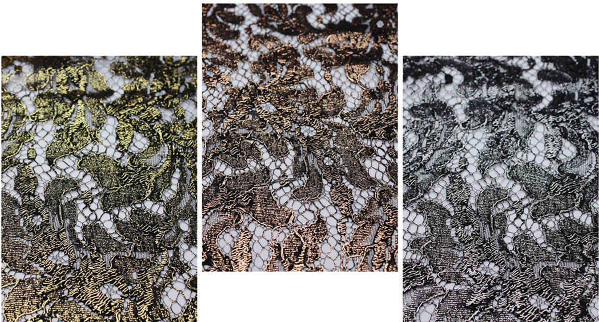 Using a totally innovative technique on our famous Leavers Lace machines, the yarn itself filled in the pattern rather than simply
