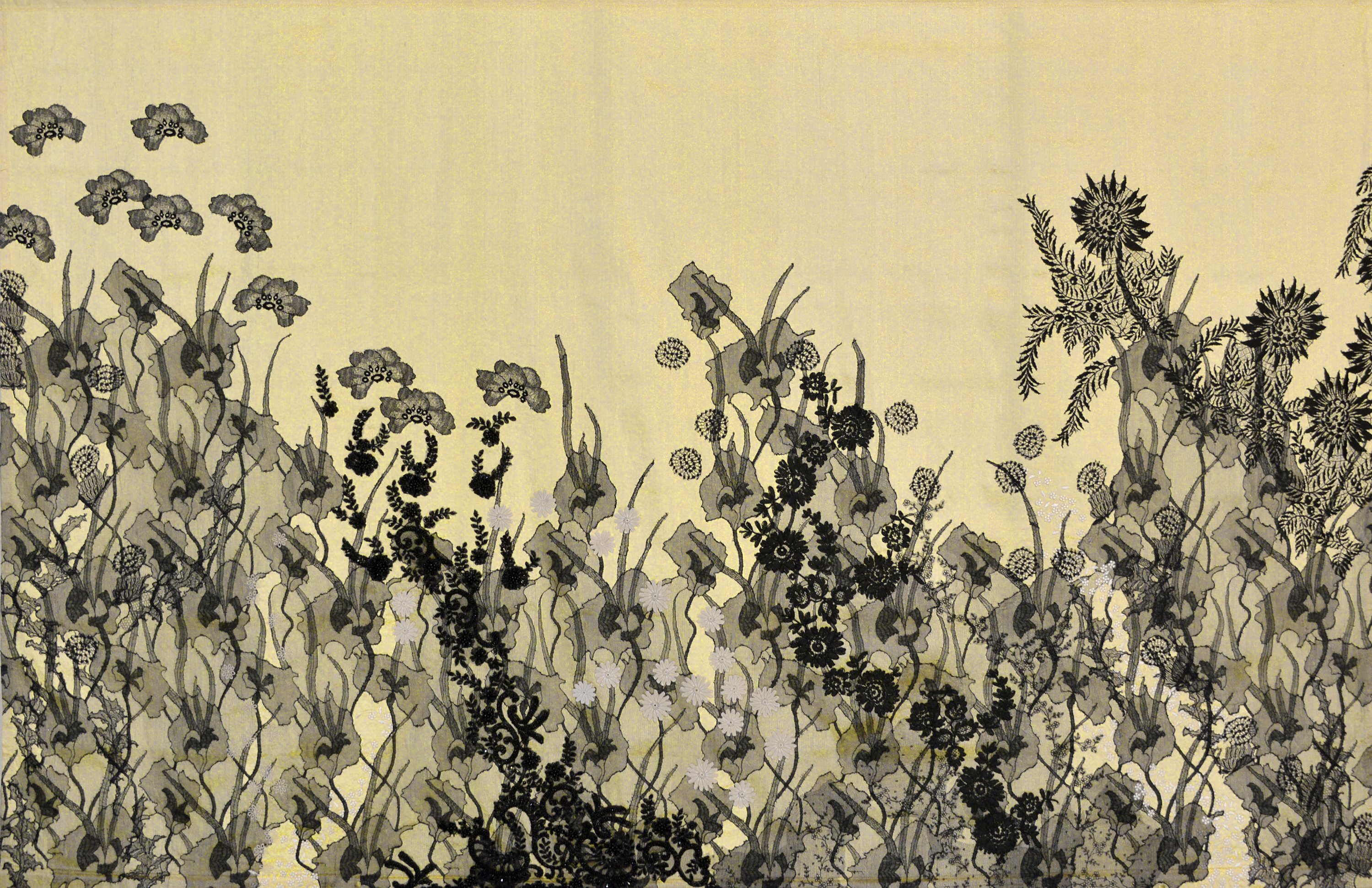 « Fouillis d’herbes », œuvre quasiment monochrome dont le point de départ est la dentelle.
